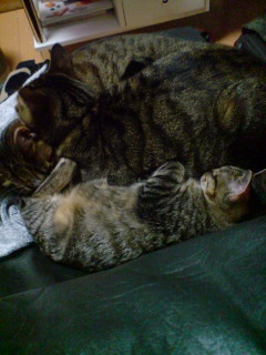 ラとミが寝てるところに、別で寝ていたエルをそっと入れてみました。