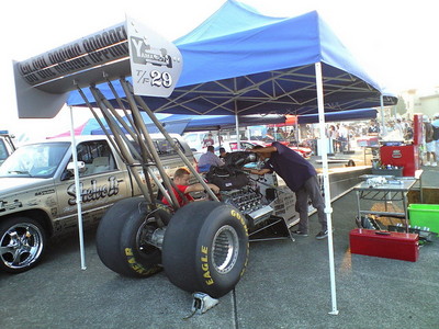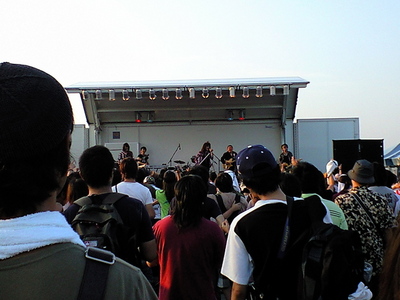 表のステージでは、ボン・ジョヴィのコピーバンドが演奏してた。