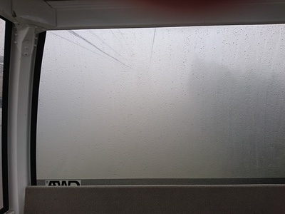 窓の曇りではなく、霧だ。