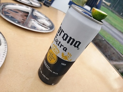 乾杯は、シークワーサーを絞ったコロナビールで。