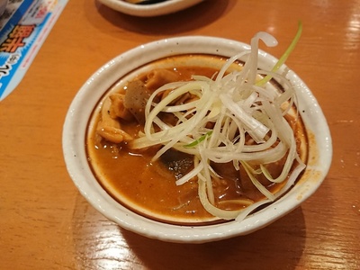 「辛うまもつ煮(350円)」。