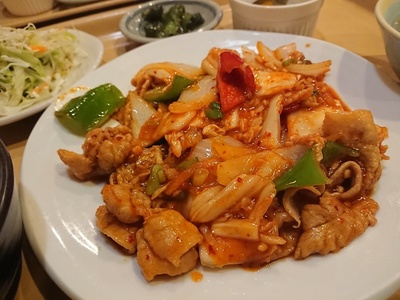 やはりランチと比べてしまい、あなり差のなさそうな「お得な定食」から「豚キムチ定食(720円)」をご飯少なめで。