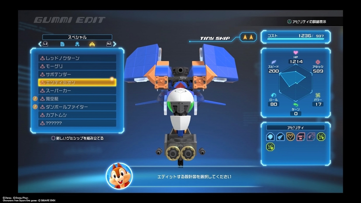 スピード、79→200。HP、514→1214。パワー、1→17。ロールとターンは変わらず。