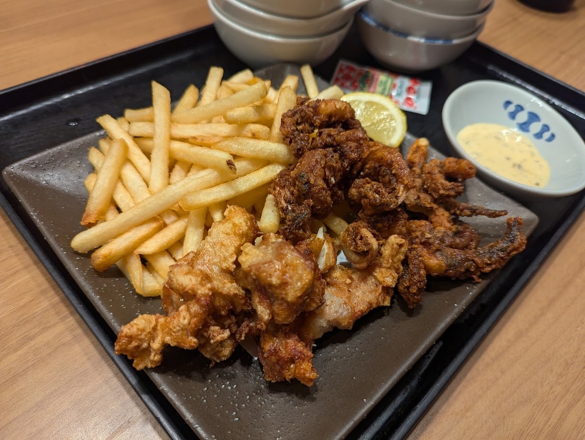 2024-12-04 夢庵@東村山 グルメ♪ もうネタ切れですねん。 リハあとに行った夢庵。 撮ってあったのはこの一枚のみ。「人気フライ盛り合わせ(908円)」。完全におつまみモードだ。 人気フライ盛り合わせ ボトルワインが安い(818円)のである。飲み過ぎたようで、ほとんど記憶がない。翌日の二日酔いも、ひとしおであった。 酒飲みにも、飲まない人にも使い勝手がいい。もうリハあとはここに固定しそうだ。 www.skylark.co.jp