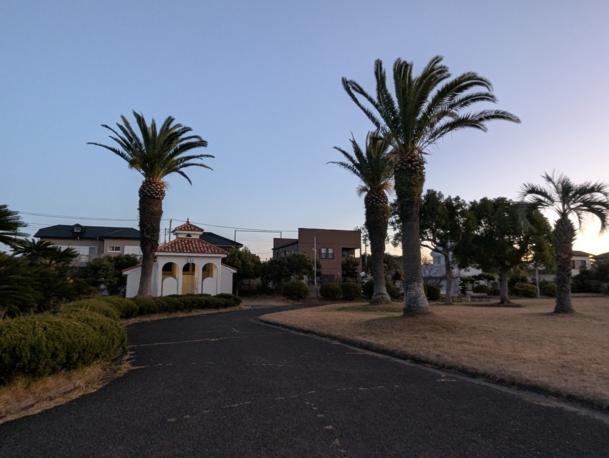 ヤシの木がたくさんある、大きな公園。