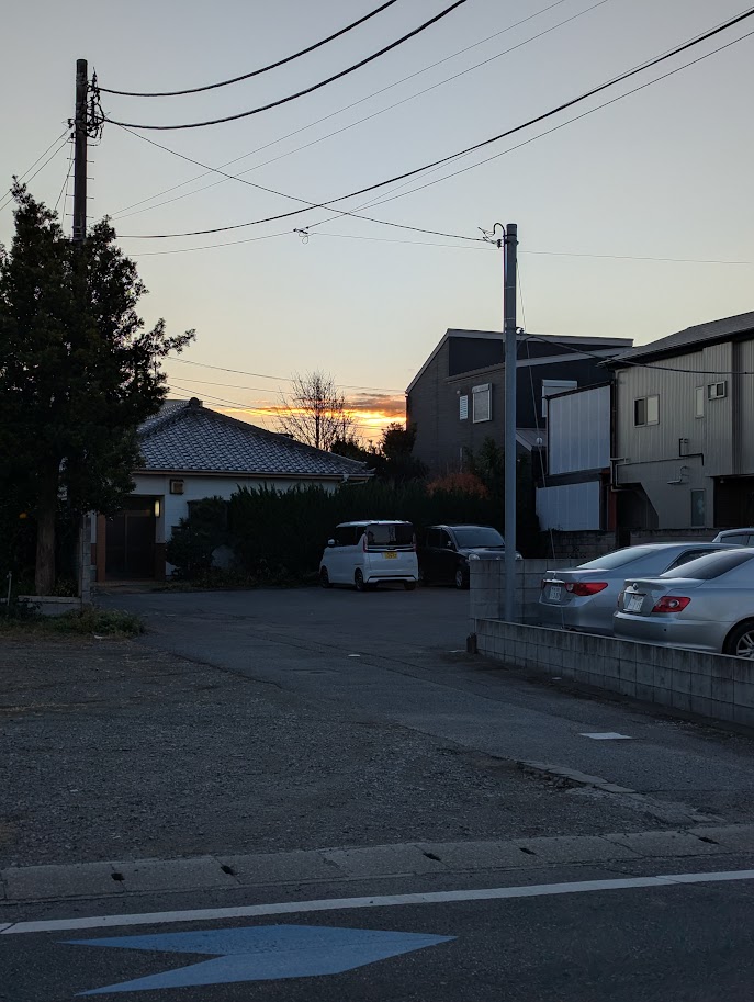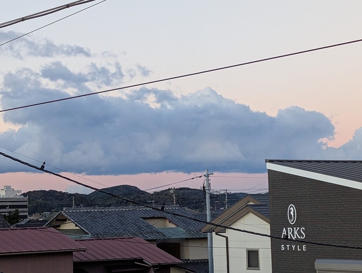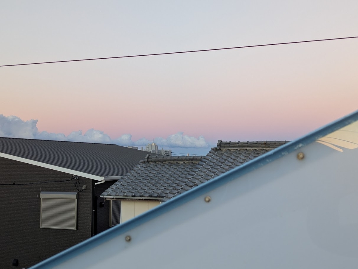 すっかり夜は明けていたが、振り向くと雲が赤く照らされていた。